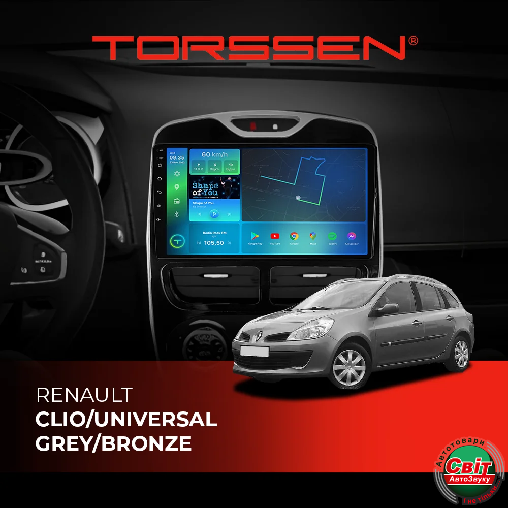 - ›Автомагнітола штатна TORSSEN Renault Clio/Universal Grey/Bronze FL9 4+64Gb 4G Carplay DSP