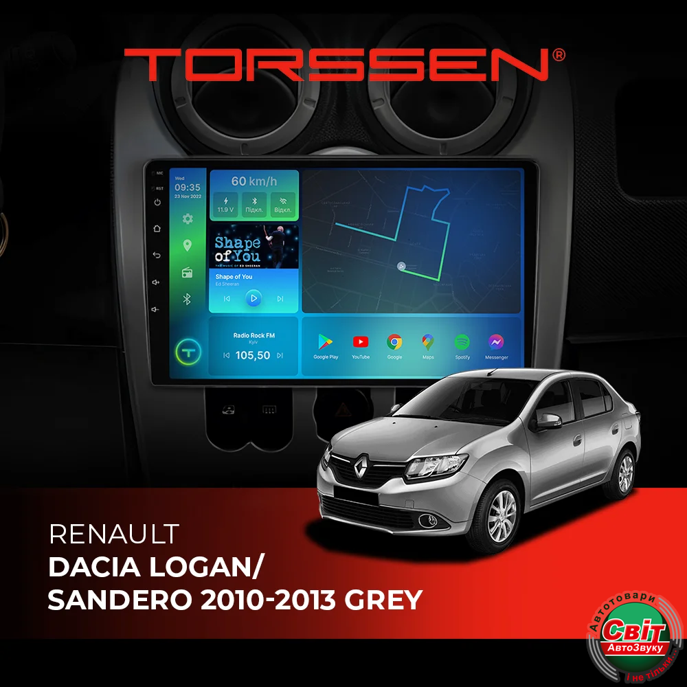 Фото Автомагнітола штатна TORSSEN Renault Dacia Logan/Sandero 10-13 grey FL9 4+64Gb 4G Carplay DSP