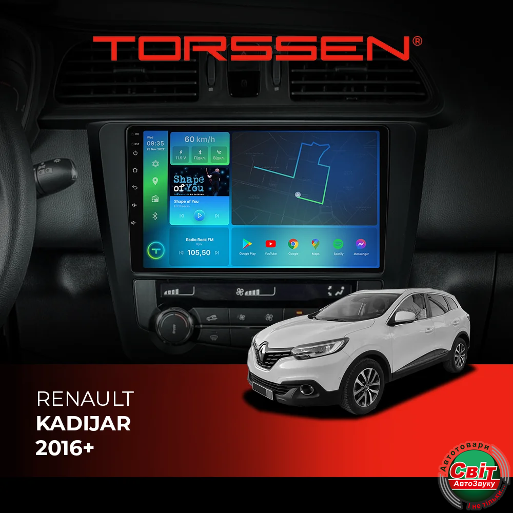 - ›Автомагнітола штатна TORSSEN Renault Kadijar 16+ FL9 4+64Gb 4G Carplay DSP