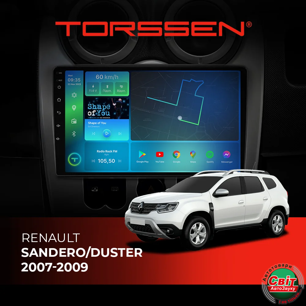 Фото Автомагнітола штатна TORSSEN Renault Sandero/Duster 07-09 FL9 4+64Gb 4G Carplay DSP