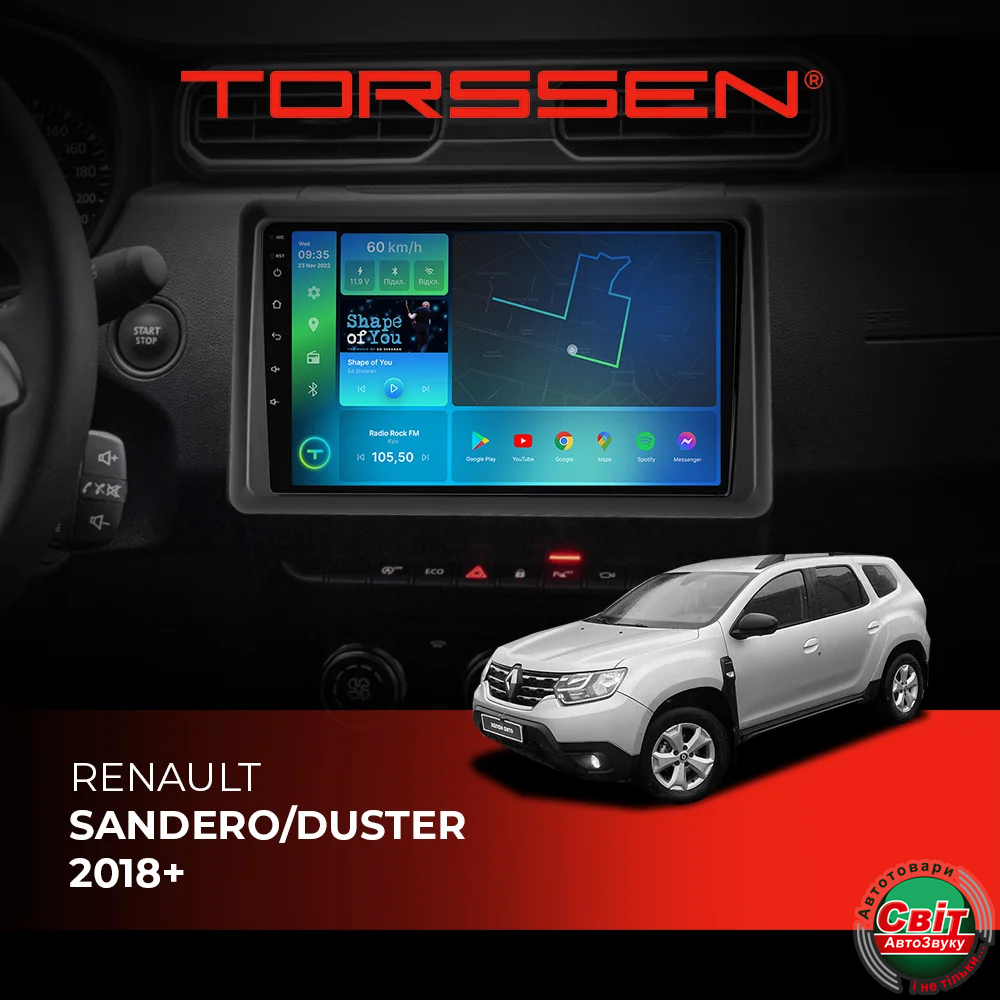 - ›Автомагнітола штатна TORSSEN Renault Sandero/Duster 18+FL9 4+64Gb 4G Carplay DSP