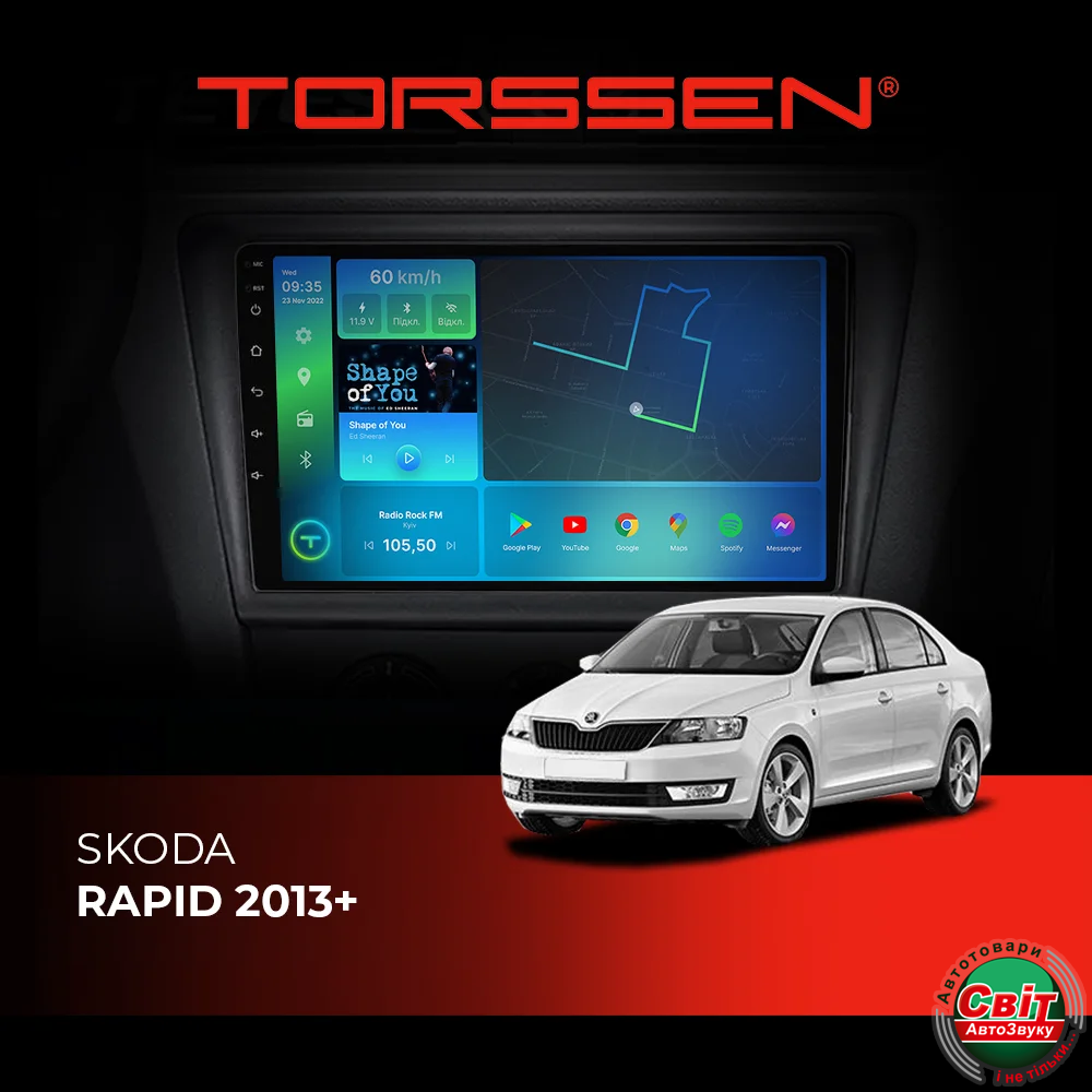 - ›Автомагнітола штатна TORSSEN Skoda Rapid 2013+ FL9 4+64Gb 4G Carplay DSP