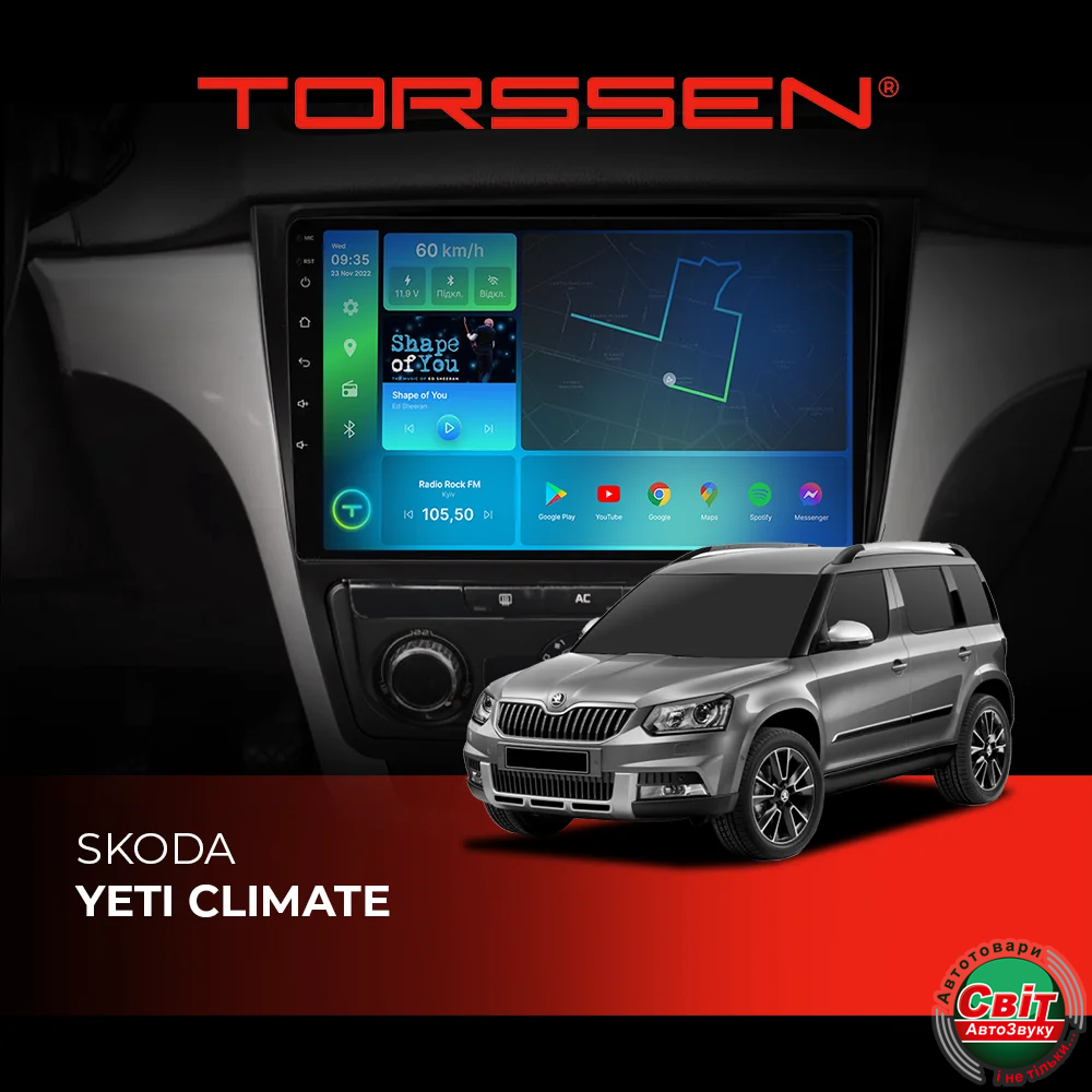 - ›Автомагнітола штатна TORSSEN Skoda Yeti Climate FL10 4+64Gb 4G Carplay DSP