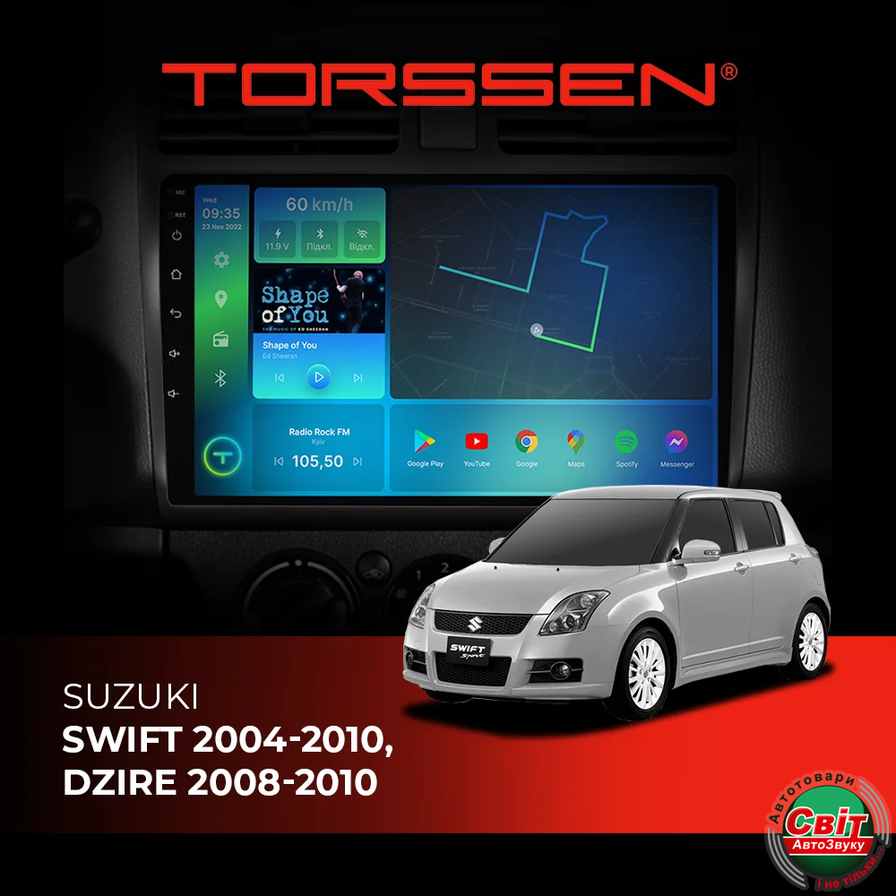 - ›Автомагнітола штатна TORSSEN Suzuki Swift 2004-2010, Dzire 2008-2010 FL10 4+64Gb 4G Carplay DSP
