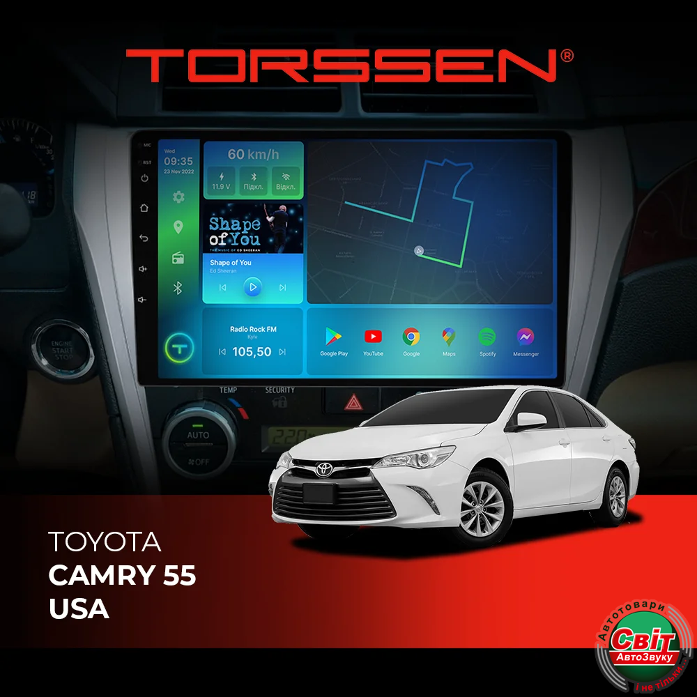 - ›Автомагнітола штатна TORSSEN Toyota Camry 55 USA FL10 4+64Gb 4G Carplay DSP