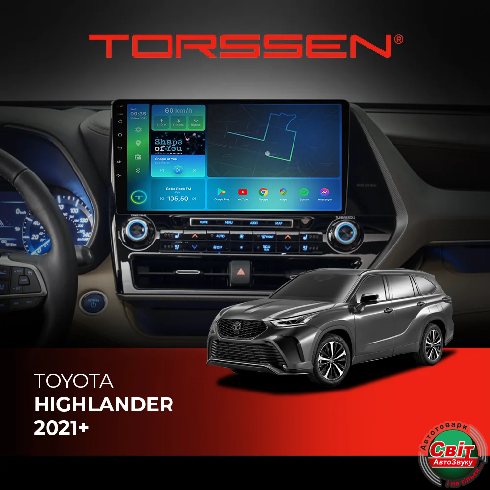 - ›Автомагнітола штатна TORSSEN Toyota Highlander 2021+ FL10 4+64Gb 4G Carplay DSP