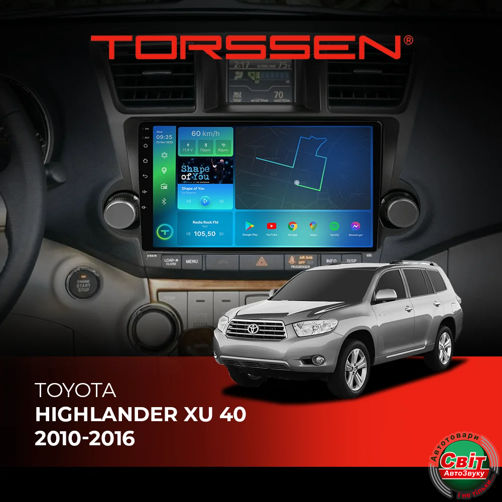 - ›Автомагнітола штатна TORSSEN Toyota Highlander XU 40 2010-2016 FL10 4+64Gb 4G Carplay DSP