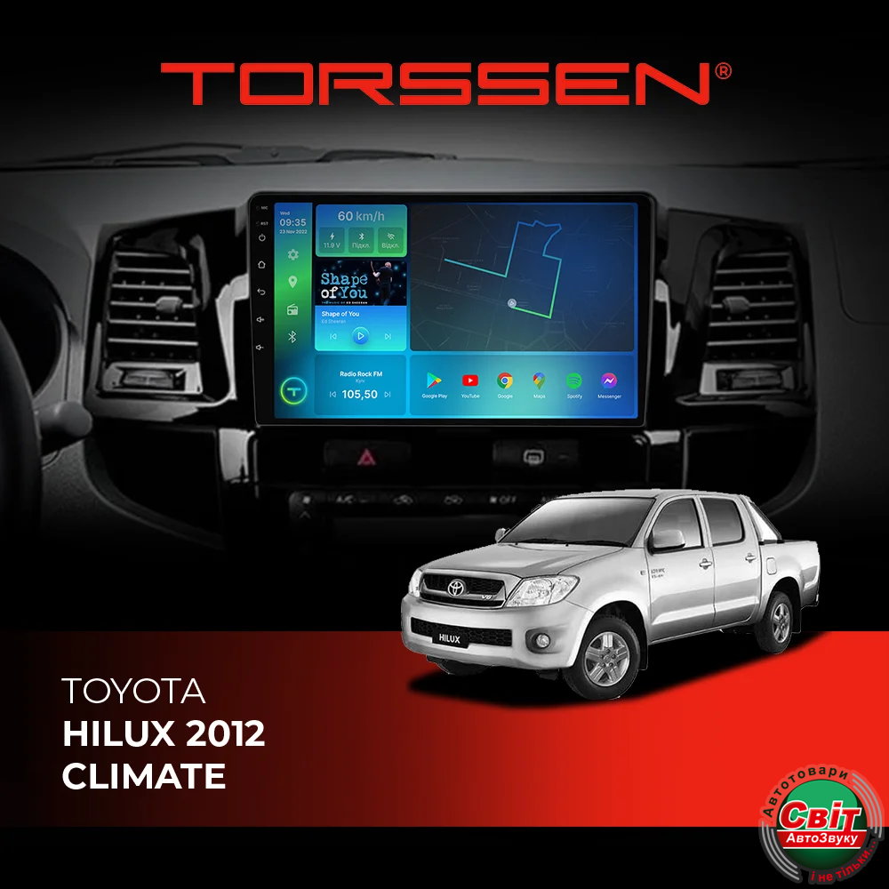 - ›Автомагнітола штатна TORSSEN Toyota Hilux 12 climate FL9 4+64Gb 4G Carplay DSP
