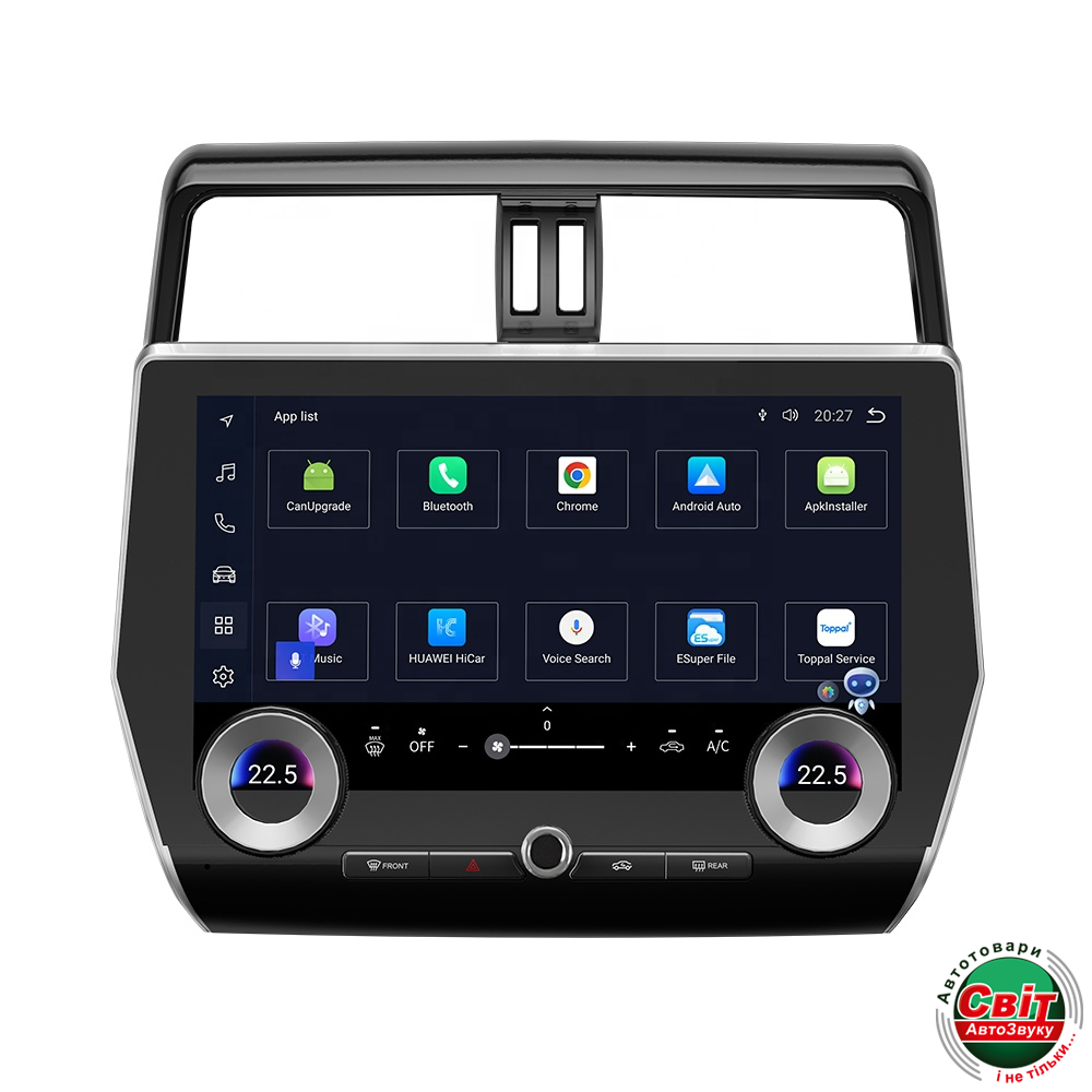 Цифрова магнітола, дизайн якої повністю розроблений під особливості салону вашого автомобіля, працює на ОС Andriod, підтримує інтернет-підключення Wi-Fi, 3G/4G, систему контролю тиску в шинах TPMS, систему кругового огляду 360 градусів, а також Carplay/Android Auto та відповідає найвищим вимогам любителів музики під час поїздок на авто.