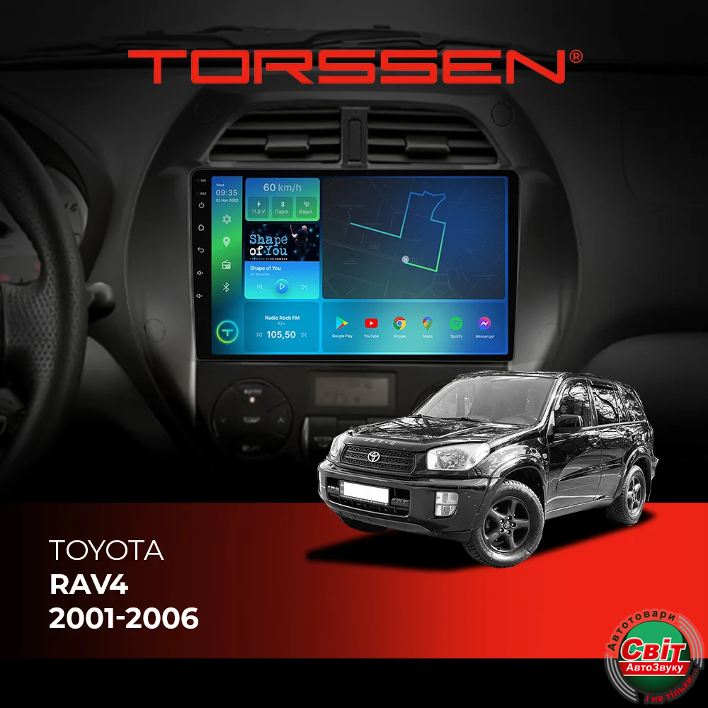 - ›Автомагнітола штатна TORSSEN Toyota Rav4 2001-2006 FL9 4+64Gb 4G Carplay DSP