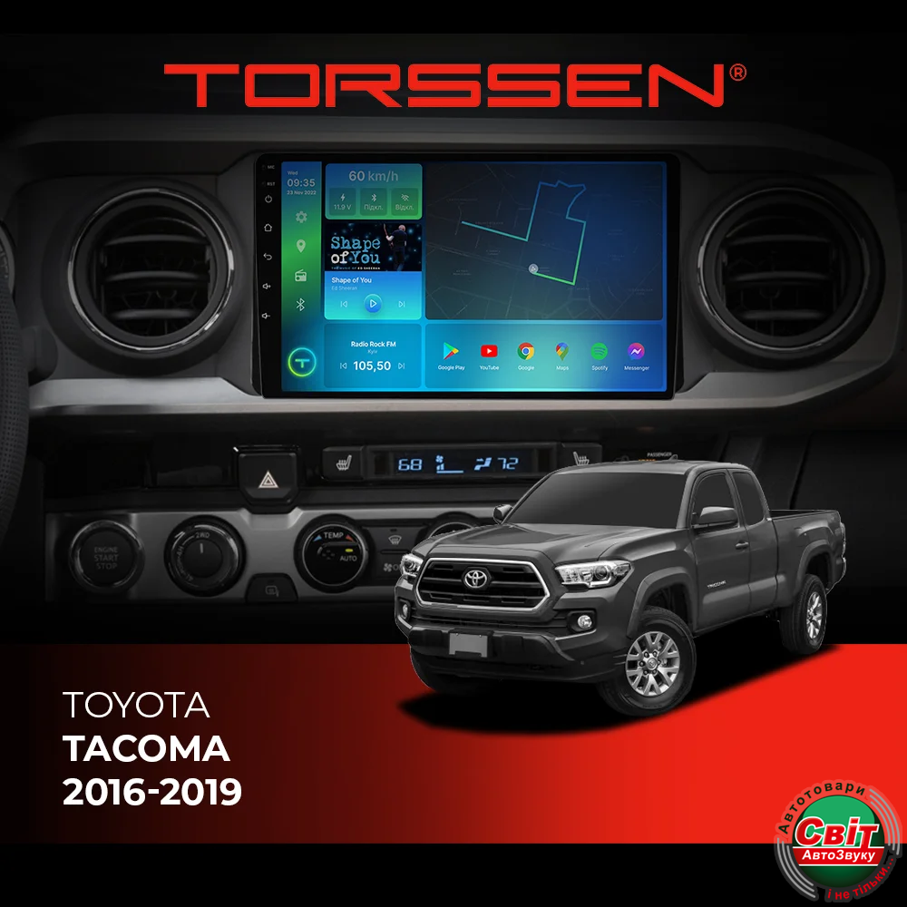 - ›Автомагнітола штатна TORSSEN Toyota Tacoma 2016-2019 FL9 4+64Gb 4G Carplay DSP