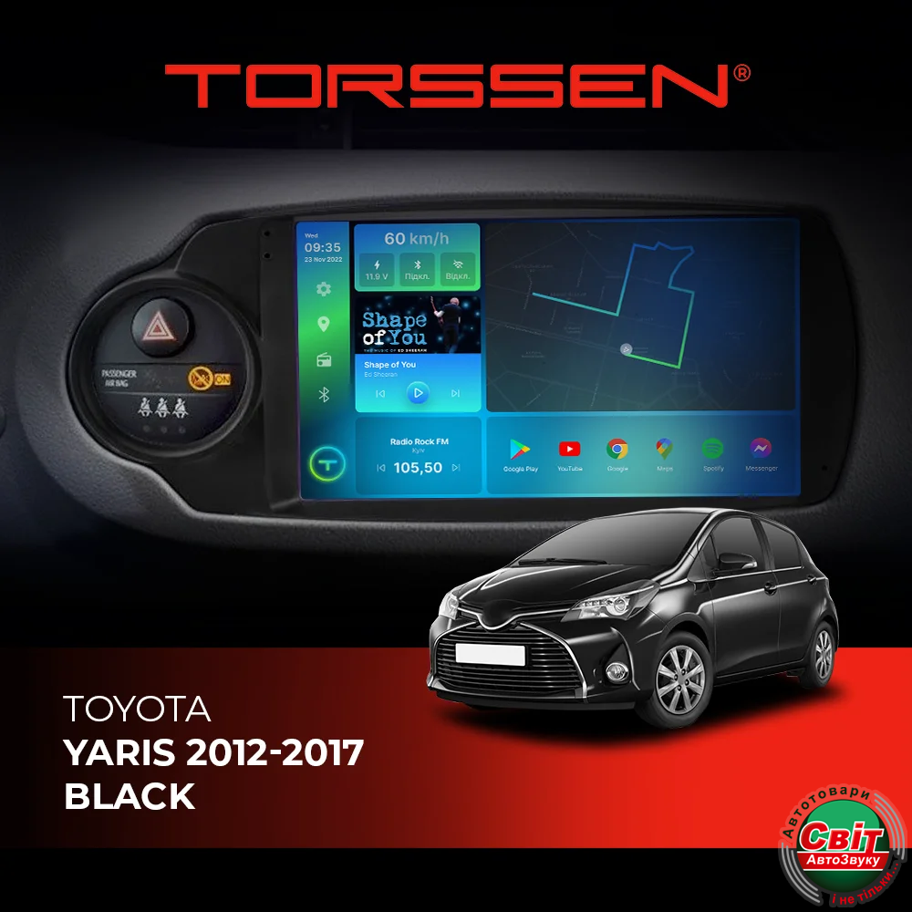 - ›Автомагнітола штатна TORSSEN Toyota Yaris 2012-2017 black FL9 4+64Gb 4G Carplay DSP