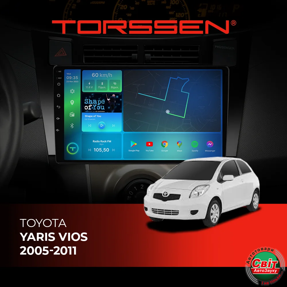 - ›Автомагнітола штатна TORSSEN Toyota Yaris Vios 05-11 black FL9 4+64Gb 4G Carplay DSP