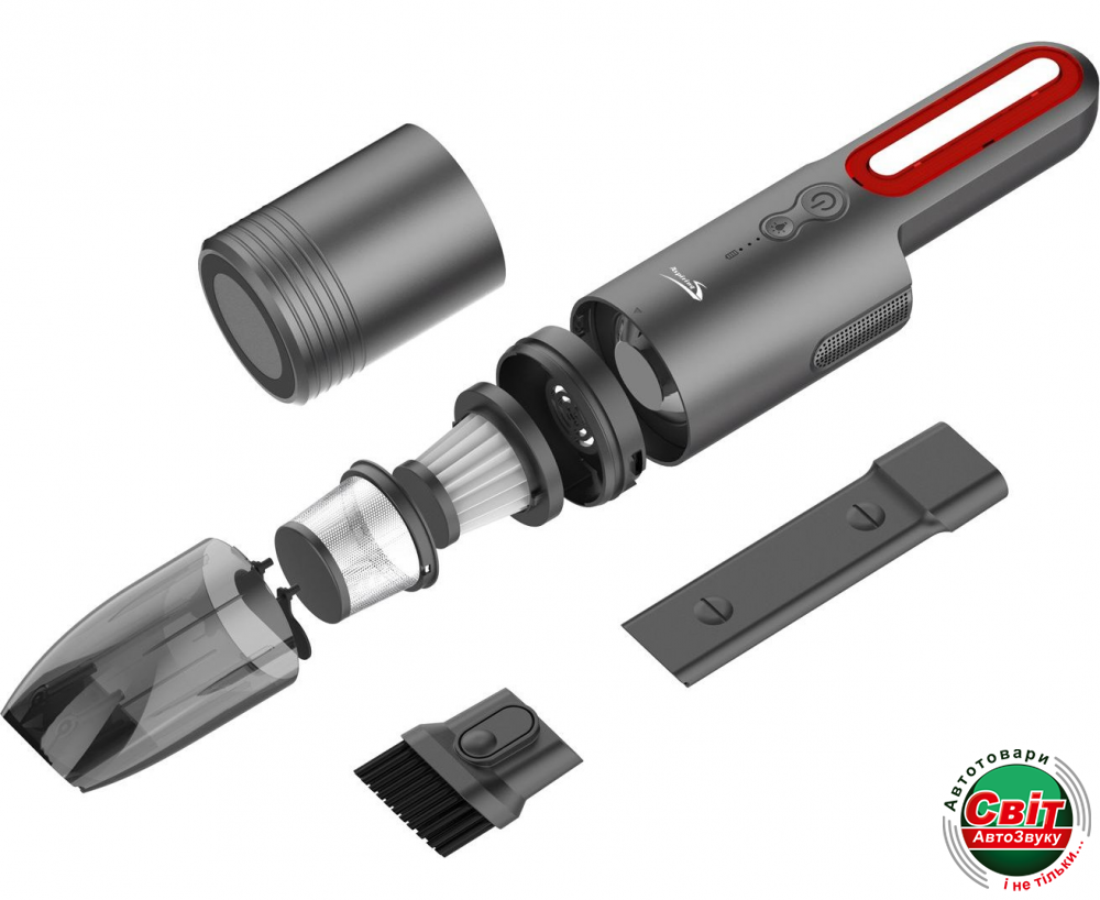 Надійний двигун і циклонний фільтр забезпечують високу швидкість всмоктування частинок. Накопичення пилу відбувається в прозорому резервуарі, який можна знімати і мити в воді.