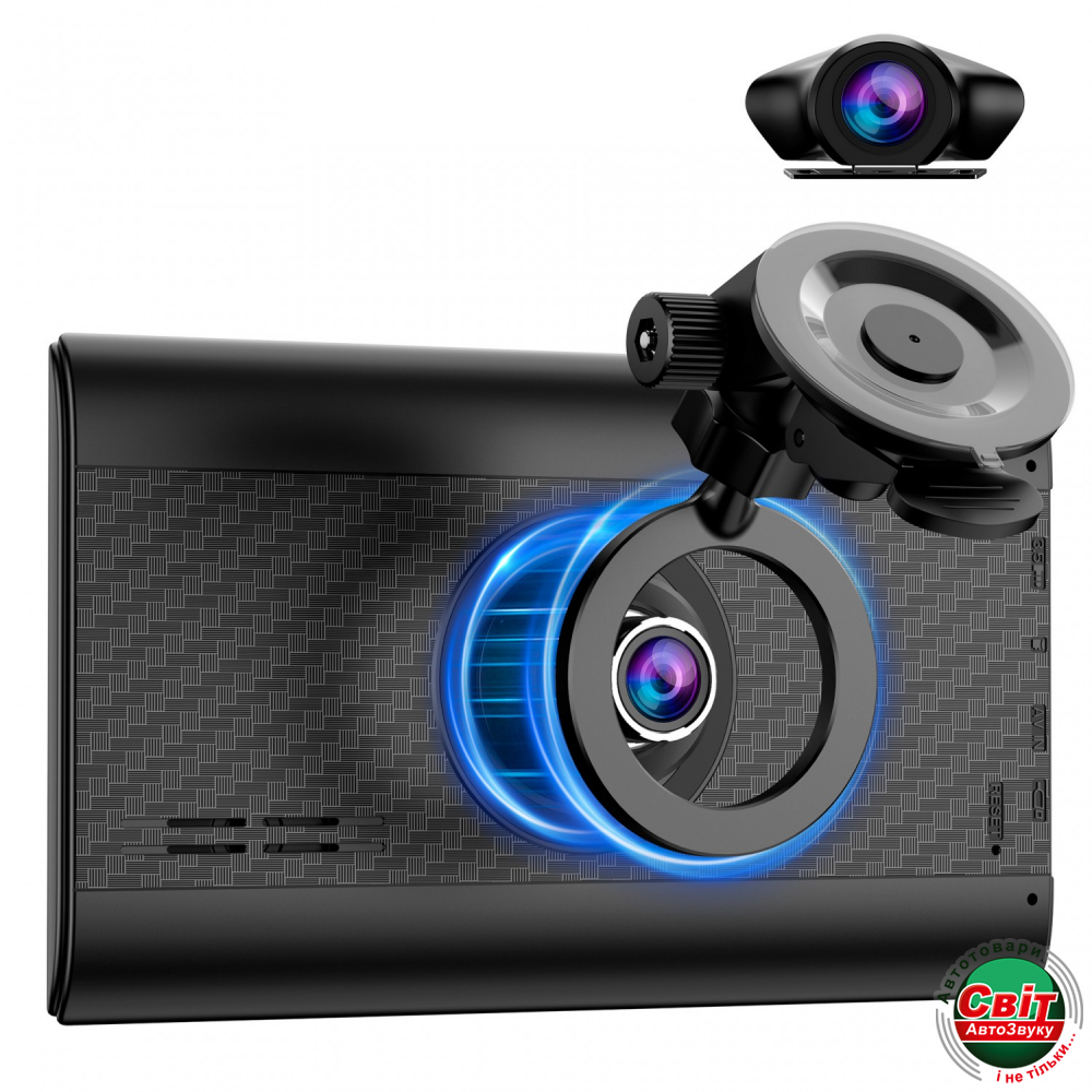 Оснащений вбудованим відеореєстратором, який дозволяє записувати все, що відбувається на дорозі під час руху. Основна камера забезпечує високу роздільну здатність QHD 2K 25601440 при 30 кадрах за секунду та широкий кут огляду 170°, завдяки сенсору GC 2093 і чотиришаровій лінзі. Відео записується у форматі TS H.265, що гарантує чіткість і ефективне стиснення. Додаткова камера з роздільною здатністю FHD 19201080 (30 FPS) і кутом огляду 120° фіксує події з іншого ракурсу.