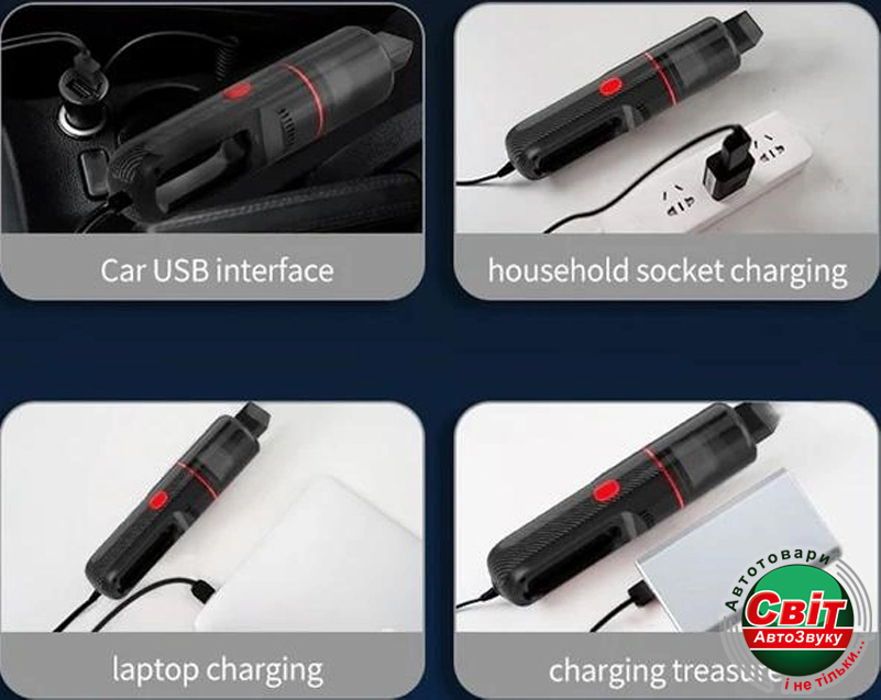 Автомобільний пилосос має ергономічний дизайн, простий у використанні та транспортуванні.