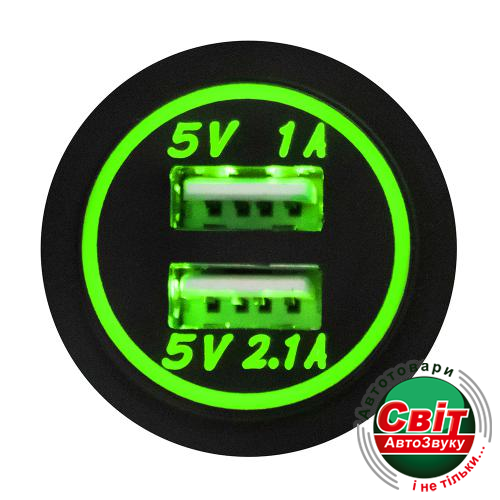 - ›Автомобільний зарядний пристрій 2 USB 12-24V врізний в планку NEW Green (10251 USB-12-24V 3,1A)