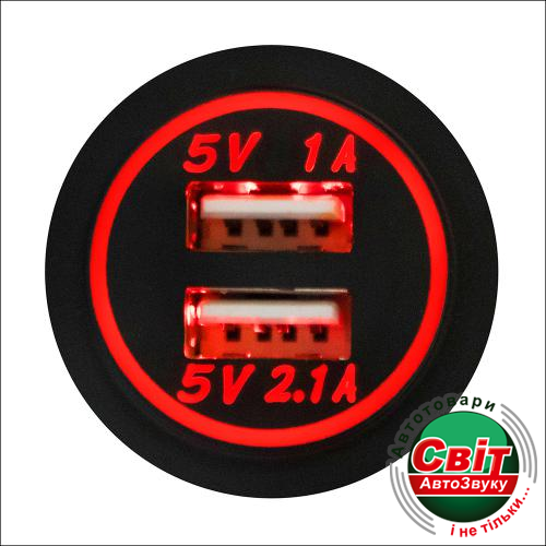 Фото Автомобільний зарядний пристрій 2 USB 12-24V врізний в планку NEW Red (10249 USB-12-24V 3,1A)