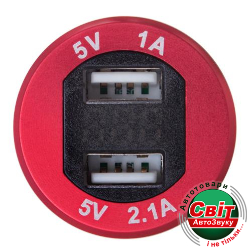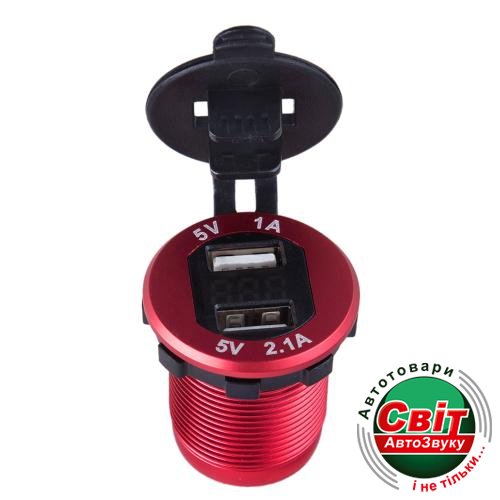 - ›Автомобільний зарядний пристрій 2 USB 12-24V врізний в планку + вольтметр металевий Red (54397 USB-12-24V 3.1A)
