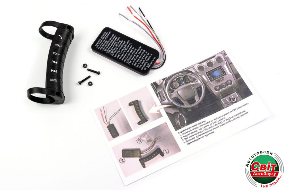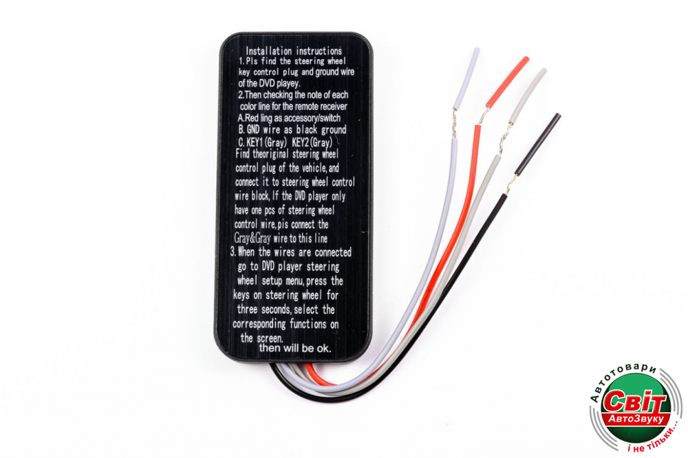 Приймальний модуль під'єднується до дротів магнітоли KEY1/KEY2/GND/ACC.