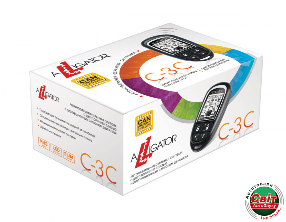 ALLIGATOR C-3С - автомобильная охранная система с функцией автоматического / дистанционного запуска двигателя, интерфесами CAN, CAN-LIN и 2CAN, настраиваемыми FLEX-каналами и поддержкой GSM-модулей.