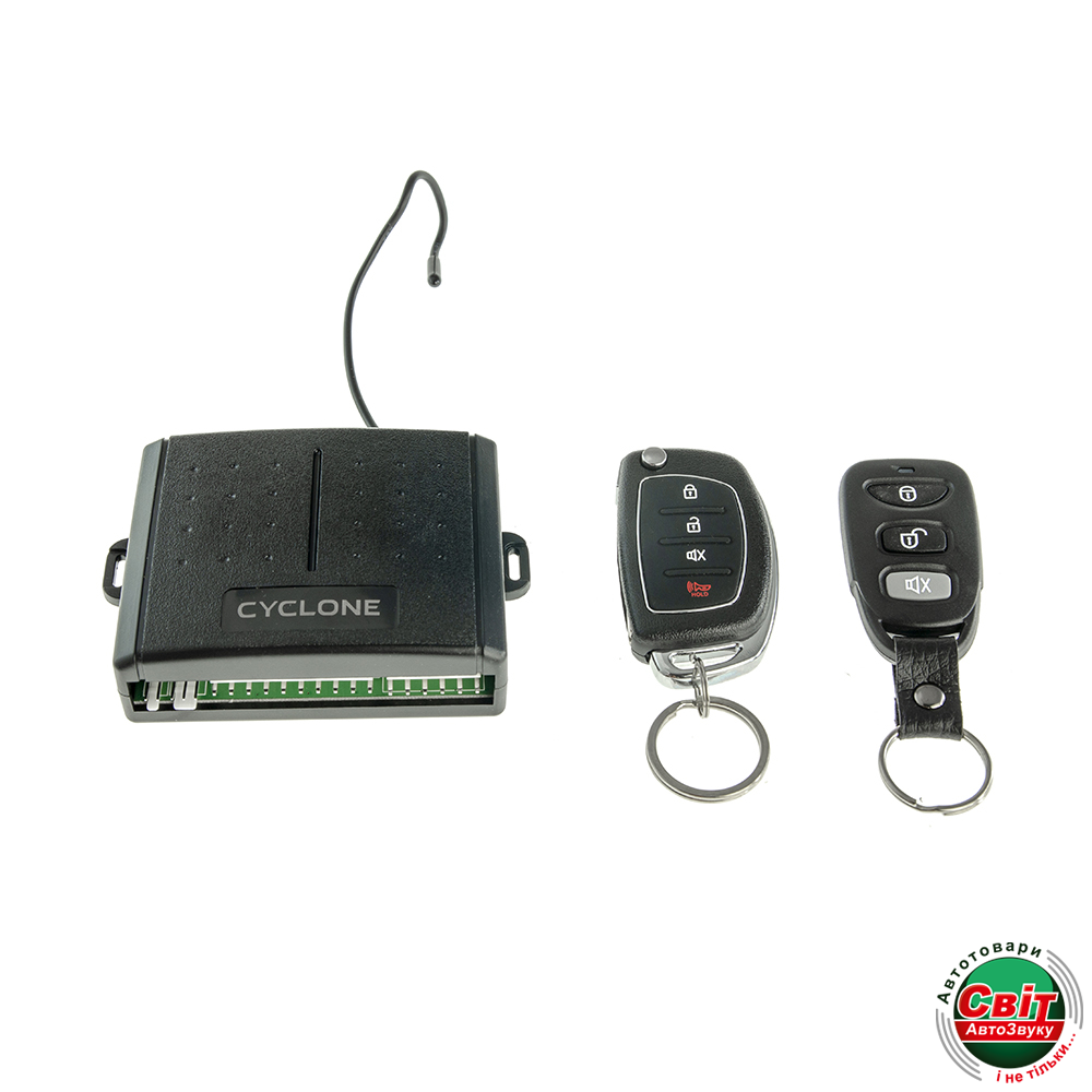 Автосигналізація Cyclon X6Одностороння автомобільна сигналізація CYCLONE X6 з двома пластиковими брелками. Вбудоване реле управління габаритними вогнями. Вбудовані реле управління замками дверей з програмованими режимами роботи. Дистанційне відкриття багажника.