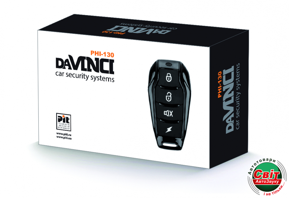 Автосигналізація DaVinci PHI-130Автомобільна охоронна система з завадостійким FM-радіоканалом збільшеного радіусу дії на 868 МГц, системами пасивного та активного захисту автомобіля.
