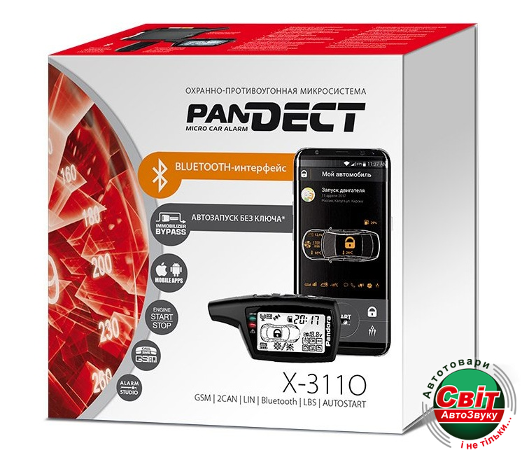 Pandect X-3110 це високофункціональна охоронно-сервісна мікросистема (c 2хCAN, LIN, Immo/Key) для спрощеного монтажу на будь-який сучасний автомобіль світу, з вбудованими інтерфейсами діалогової зв'язку 868 MHz, з підвищеною дальністю, інтерфейсом Bluetooth та GPRS-інтернет-інтерфейсом, реалізованим сервісом p-on.ru з можливістю роботи у популярних Інтернет-браузерах персональних комп'ютерів і програм для смартфонів iOS і Android.