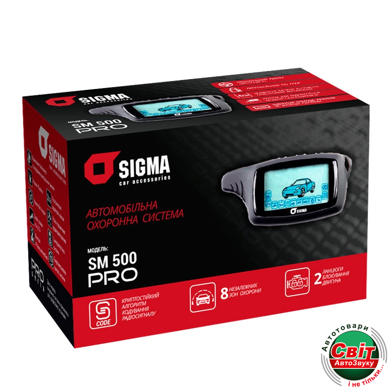 Автосигналізація Sigma SM-500 ProОхоронна система Sigma SM-500 PRO вирізняється динамічним кодом керування (на основі криптостійкого алгоритму кодування радіосигналу), який надійно захищений від цифрового злому та є на сьогоднішній день найнадійнішим.