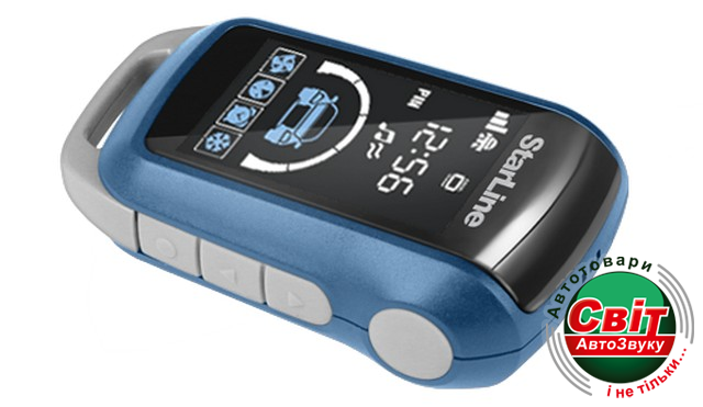 Управление охраной автомобиля штатным брелком с надежной дополнительной диалоговой авторизацией любым из двух брелков StarLine (при подключении по цифровым шинам или аналоговым цепям)