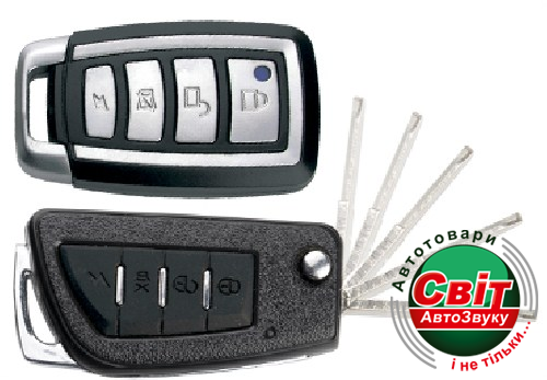 Автомобільна одностороння охоронна сигналізація. Learning код. Два 4-x кнопкові пульти керування. Один пульт із викидним ключем. Вбудоване реле габаритів і ЦЗ. Вбудовані реле відмикання багажника. Зовнішнє реле блокування двигуна. Режим Anti-Hi-Jack. Індикаторний світлодіод. Сирена в комплекті