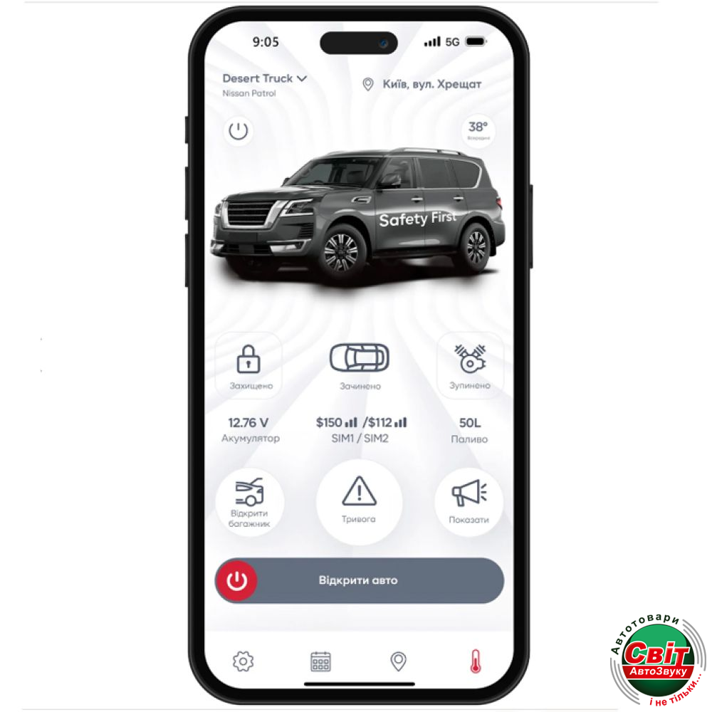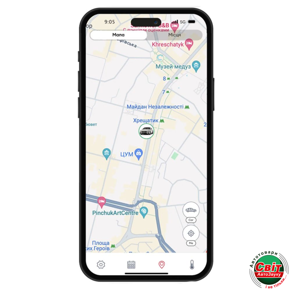 Охоронна система дозволяє відстежувати місцезнаходження авто на карті, налаштовувати сценарії дій при наближенні до певних зон та передавати доступ іншим користувачам через додаток Gazer Car. Завдяки гнучким налаштуванням система забезпечує високий рівень безпеки та зручність.