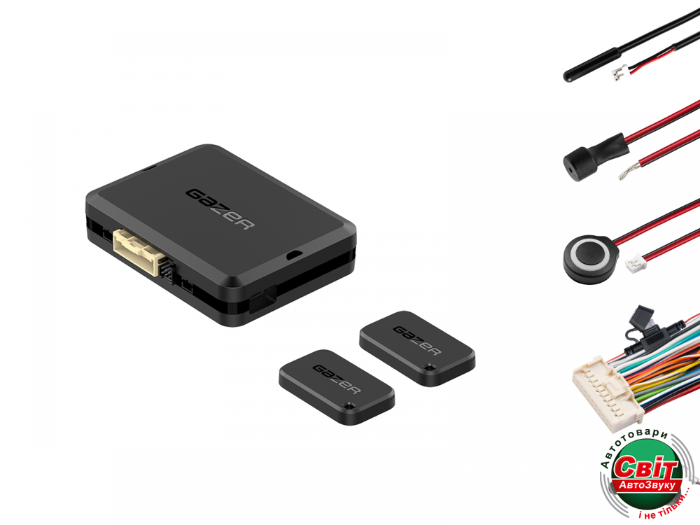 - Мобільний додаток: Gazer Car для керування системою та отримання сповіщень