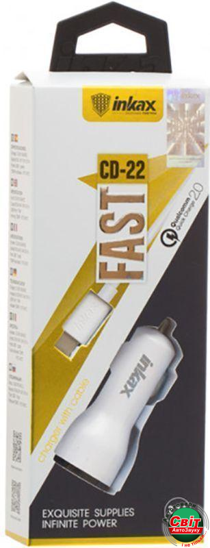 - ›АЗП Inkax CD-22 Car charger + Micro cable 1USB 2.1A White
