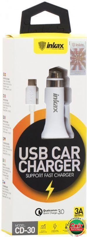 - ›АЗП Inkax CD-30 Travel charger + Micro cable 1USB 3A White