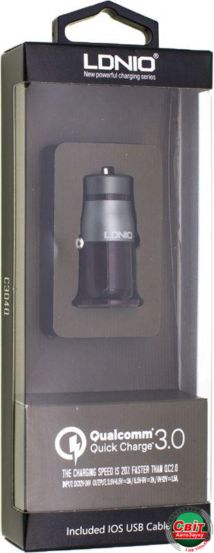 - ›АЗП LDNIO C304Q Car charger 1USB 1A + Lightning cable White