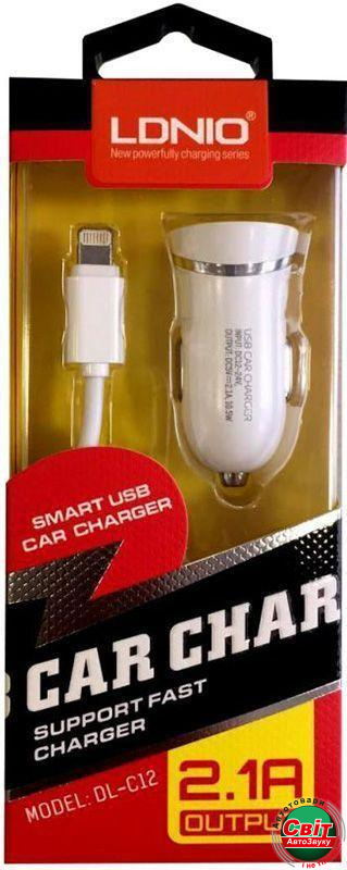 АЗП LDNIO DL-C12 Car charger 1USB 2.1A + Lightning cable White