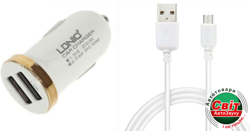 - ›АЗП LDNIO DL-C22 Car charger 2USB 2.1A + MicroUsb cable White