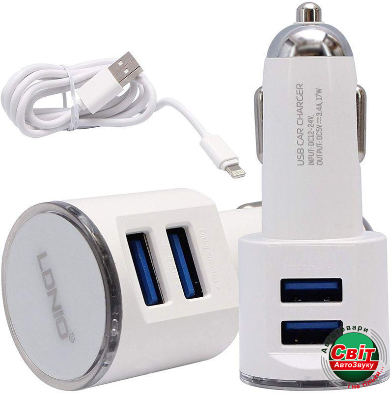 АЗП LDNIO DL-C29 Car charger 2USB 3.4A + Lightning cable White