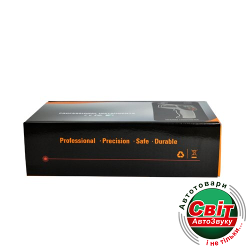 Бесконтактный инфрачервоний термометр (пірометр) Benetech GT950GT950 пірометр, новый бесконтактный инфрачервоний термометр производства компании Benetech. Пирометр GT950 предназначен для выполнения безконтактного измерения температур поверхностей в диапазоне от -50ºC до 950 ºC, обеспечивает тем самым безопасность конроля температур потенциально опасных объектов, к примеру находящихся под высоким напряжением, движущихся частей машин и механизмов, химически агрессивных сред. Особенностью пірометра GT950 является наличие цветного высококонтрастного инверсного дисплея, круговой лазерный целеуказатель и возможность коррекции коэффициента излучательной способности в диапазоне от 0.10 до 1.00, что позволяет настраивать пірометр для измерения температуры различных поверхностей (как правило коррекция используется при измерении температуры металлических поверхностей и им подобных). Функциональность пірометра GT950 соотвествует гораздо более дорогим моделям и включает фиксацию максимального, минимального, среднего или разности значений за измерительную сессию, а также возможность сохранения и вызова до 30-ти результатов измерения. Также реализованы привычное управление подсветкой дисплея, лазером, выбором единиц измерения, индикация недостаточного заряда батареи, автоматическое выключение пірометра при завершении сеанса измерений.
