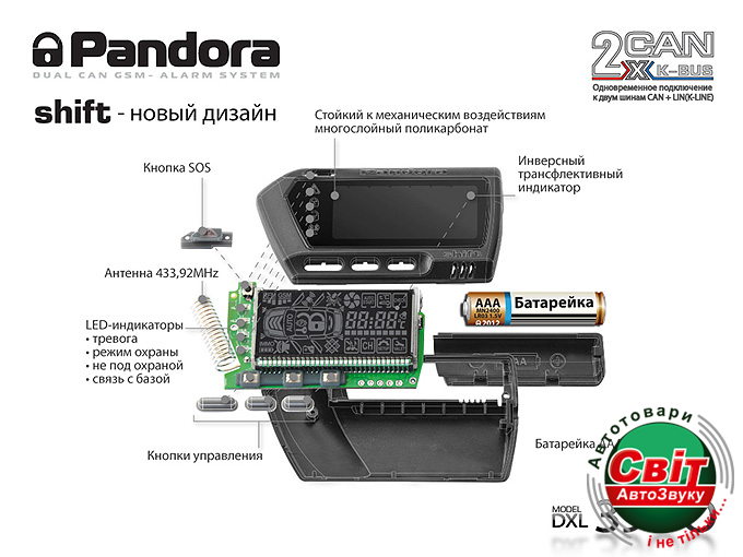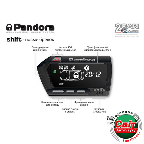 Брелок Pandora D700 с двухсторонней связью, диалоговым алгоритмом шифрования, улучшенной информативностью и стильным дизайном. На корпусе расположено четыре кнопки для постановки, снятия с охраны, программирования и настроек, а также кнопка (SOS) для подачи экстренного вызова на заранее запрограммированный телефонный номер. Есть звуковое и графическое оповещение событий.Новая форма корпуса, отсутствие ярко выраженного корпуса антенны, новое расположение кнопок управления.