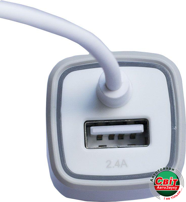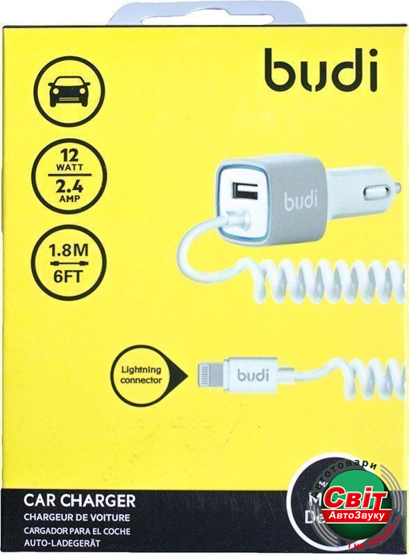 BUDI Car charger Blue Led Lightning 1.2 m + 1USB 2.4A White