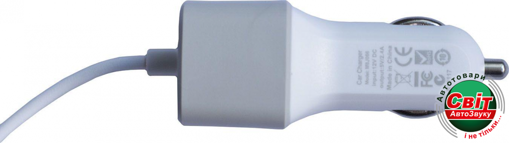 - ›BUDI Car charger Blue Led Lightning 1.2 m + 1USB 2.4A White