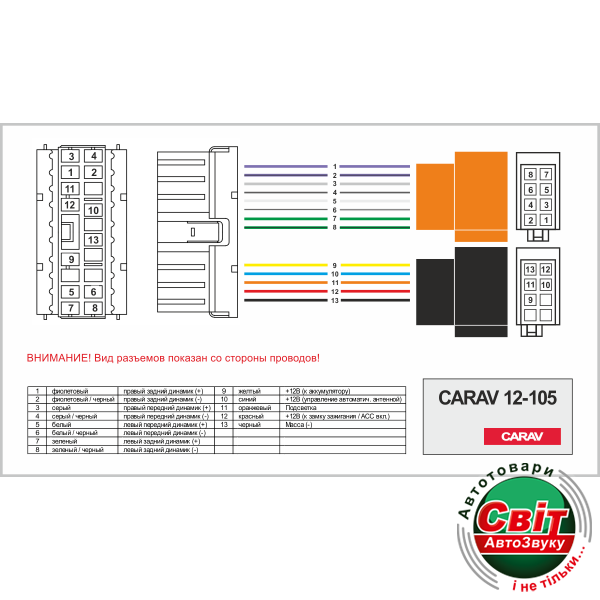 Разъем для штатної магнітоли Carav 12-105 для автомобилей: