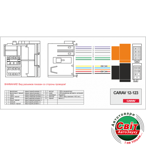 Разъем для штатної магнітоли Carav 12-123 для автомобилей:
