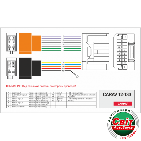 Разъем для штатної магнітоли Carav 12-130 для автомобилей: