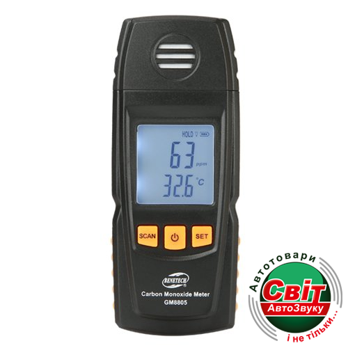 Детектор чадного газу CO + термометр Benetech GM8805Окись углерода — газ без цвета и запаха. Образуется при производственных процессах (доменное производство, литейные цехи), при работе автотранспорта, а также в жилищах при неполном сгорании органических веществ, содержащих углерод, при курении и т.д.