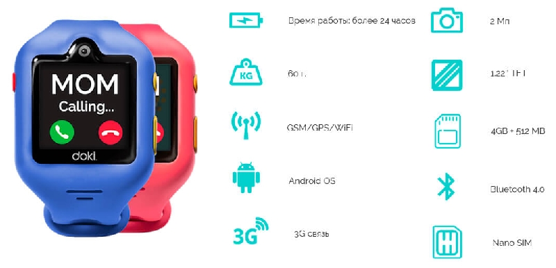В dokiWatch S предусмотрена кнопка SOS, нажав и удерживая которую в течение трех секунд малыш может отправить тревожный сигнал, если оказался в беде. При этом все родственникам, которые заранее указаны в приложении, придет не только сам сигнал о происшествии, но и 60-секундная запись всего, что происходит рядом с часами и текущие координаты ребенка.