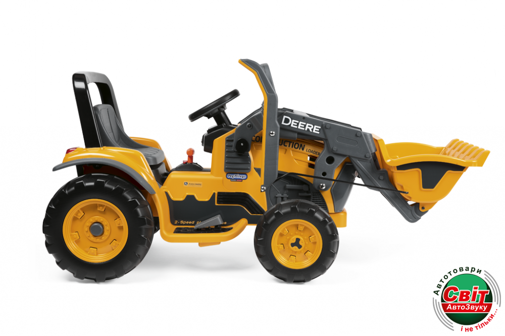 Одноместный электромобиль JD Ground Loader в точности копирует дизайн строительной техники компании John Deere и является аналогом модели экскаватора Ground Loader. Электромобиль оснащен подвижным ковшом, что открывает широкие возможности для тематических детских игр. Три скорости (реверс и две передние) и колеса из износостойкого полимера позволяют электромобилю передвигаться по любому дорожному покрытию (асфальту, грунту, щебенке, песку) и преодолевать подъемы с наклоном в 17%.