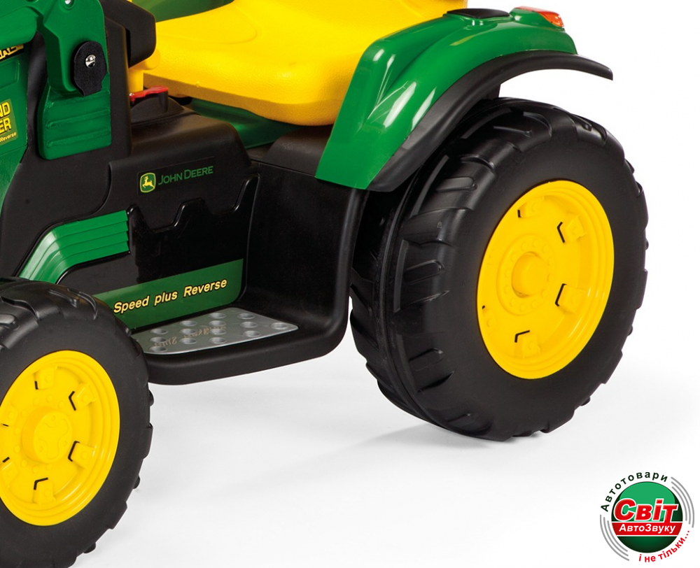 Дитячий экскаватор Peg-Perego John Deere Ground Loader- Модель подходит для детей от 3х лет. Специально для этого возраста предусмотрены блокировка более быстрой скорости при помощи съемной планки, которая блокирует движение рычага выбора скорости, а также регулировка сидения. В комплекте также поставляются сигнал на руле и FM-радиоприемник. В дальнейшем - по мере роста малыша - сиденье можно отодвинуть назад, а скорость - разблокировать.